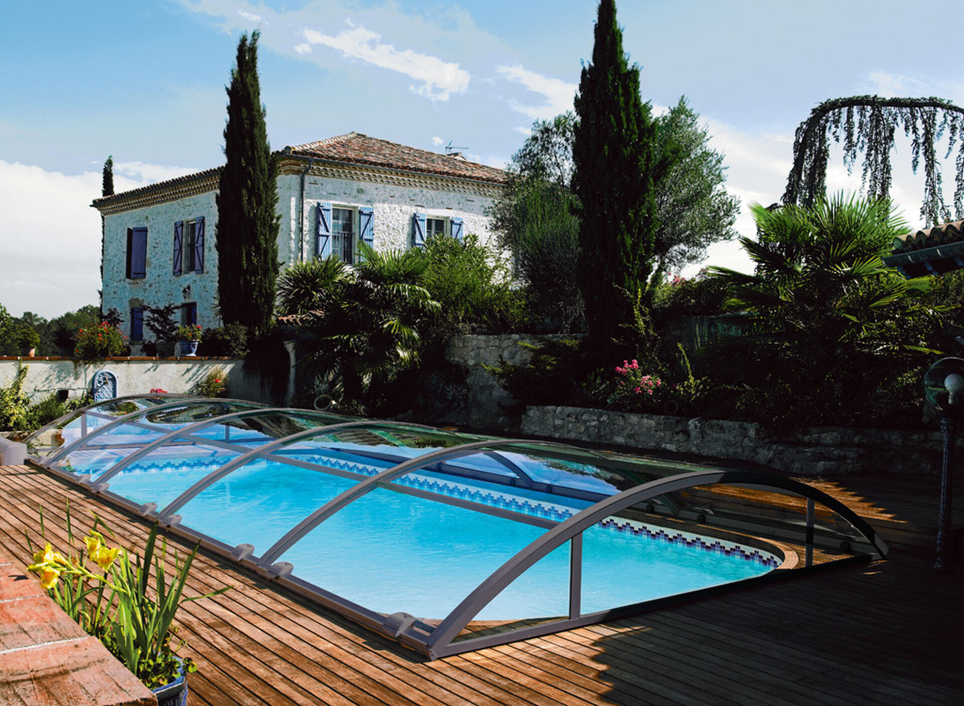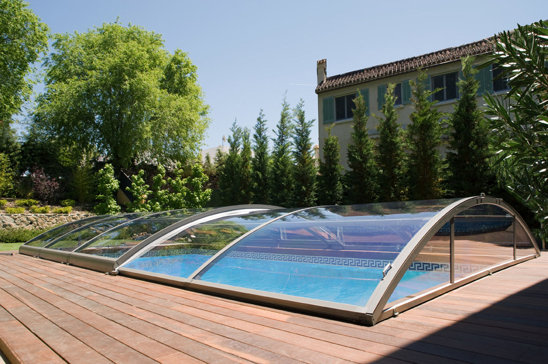 L’ABRI BAS CRISTAL est en polycarbonate totalement transparent. Ses caractéristiques en font une matière aussi sécurisante qu’esthétique. Cette ABRI BAS CRISTAL se décline sur les abris bas amovibles, coulissants et motorisés. Ce polycarbonate de dernière génération est incassable, léger et ultra résistant. Il est aussi transparent que l'eau pour un abri de piscine tellement discret qu'il se fait oublier ! Plus qu'une finition étincelante, ce revêtement d' 1,5 mm d'épaisseur offre une résistance à toute épreuve. La feuille de polycarbonate est pliée à chaud pour former sur toute sa longueur une gorge dans laquelle vient se crocheter le profil aluminium. Cette structure dissimule des tendeurs qui confère à l'ensemble souplesse et rebond, le revêtement plie et revient en place, sans casser si sortir de son cadre aluminium.