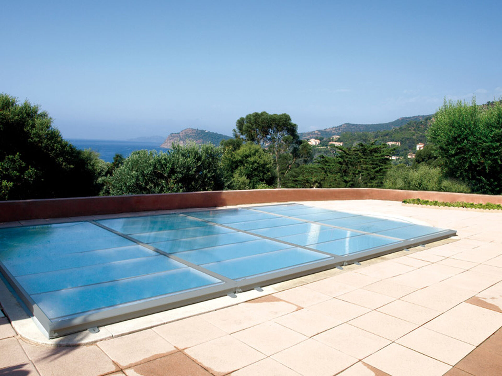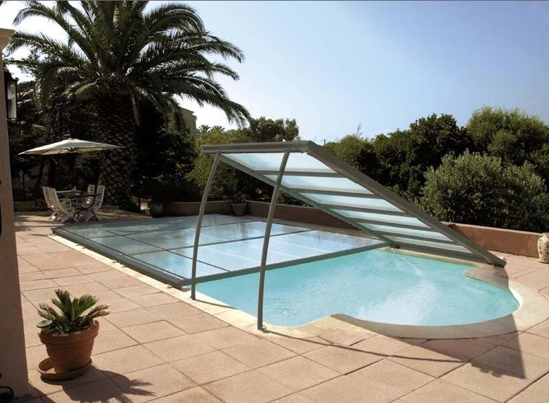 1*/ Il y a l’abri plat motorisé qui a la particularité d’être composé de modules de même largeur, ils roulent et s’empilent les uns sur les autres pour gagner de l’espace en bout de bassin. Tous les avantages de l’abri bas sont réunis dans ce produit : sécurité, chaleur de l’eau, entretien facilité, automatisme et design. Ce dispositif fonctionne à l’aide d’une clé ou bien d’une télécommande.