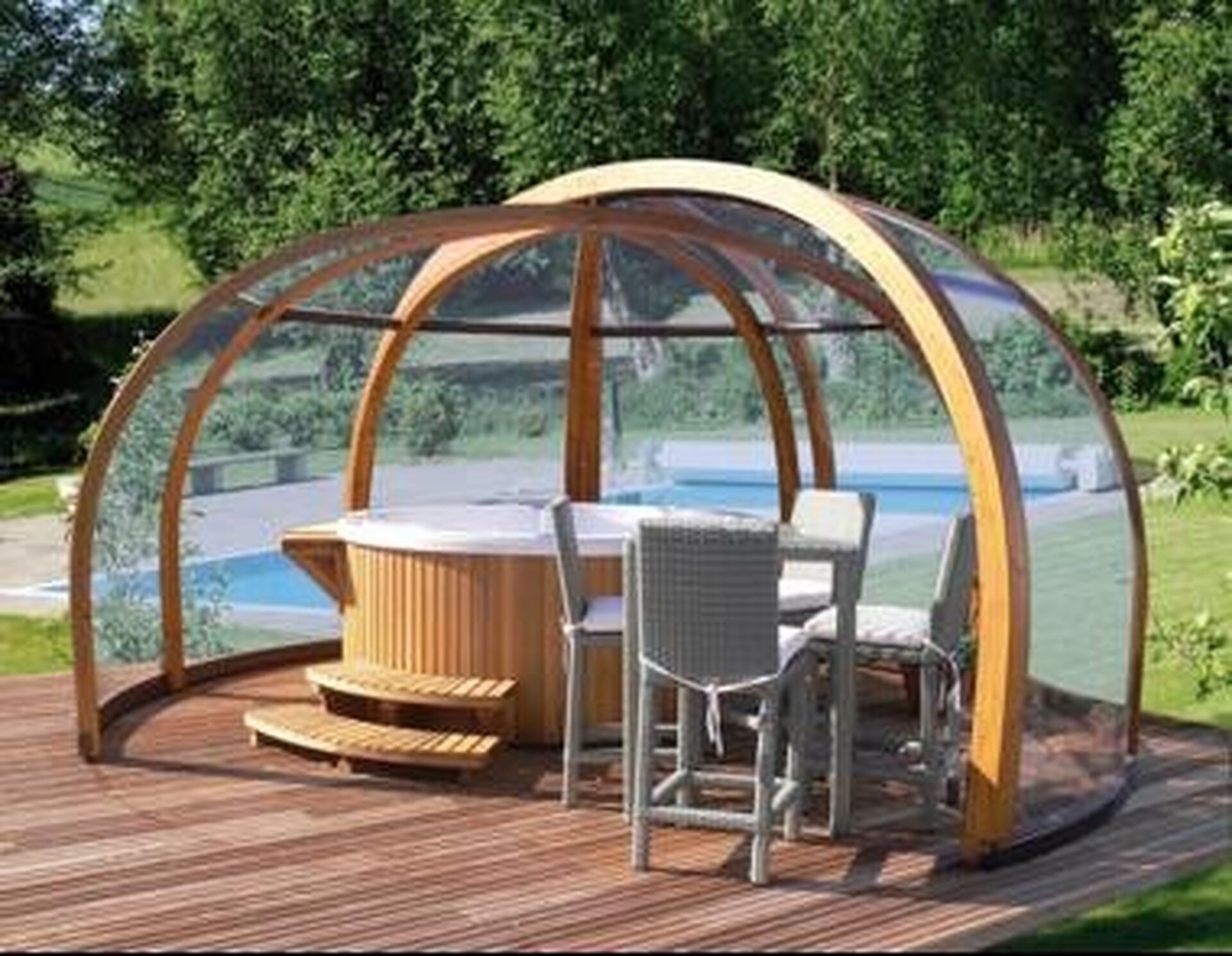 Cet Abri est boulonnée au sol. Le trépied de l’abri SPA est doté d’un axe inox central suspendu, sur lequels’assemblent les éléments, permettant une rotation.Ce système est totalement innovant, composé d’éléments indépendants, qui peuvent être placés et ouverts à tout endroit.La toiture de l’abri SPA est en polycarbonate traité anti-UV.Les parois verticales des modules sont en polymétacrylate transparent de 4mm traité anti-UV.Sur la périphérie de chaque module de l’abri SPA, une brosse nylon permet d’éviter toute intrusion (végétale ou animale), et limite la déperdition calorifique. Les filières aluminium de l’abri de SPA sont brevetées ABRISUD.