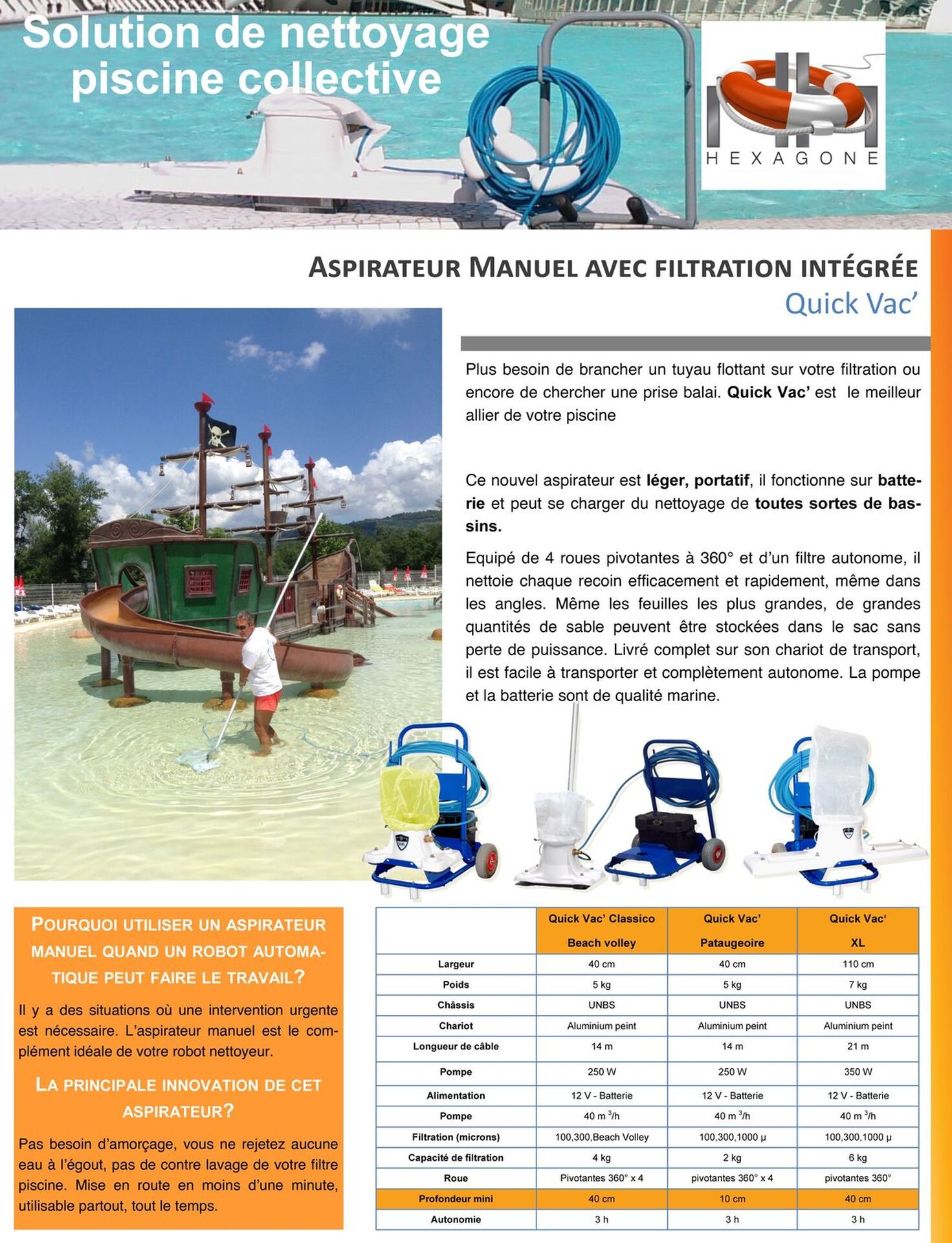Pourquoi utiliser un aspirateur manuel quand un robot automatique peut faire le travail ? Il y a des situations où une intervention urgente est nécessaire. L'aspirateur manuel est le complément idéale de votre robot nettoyeur. Pas besoin d'amorçage, vous ne rejetez aucune eau à l'égout, pas de contre lavage de votre filtre piscine. Mise en route en moins d'une minute, utilisable partout, tout le temps.