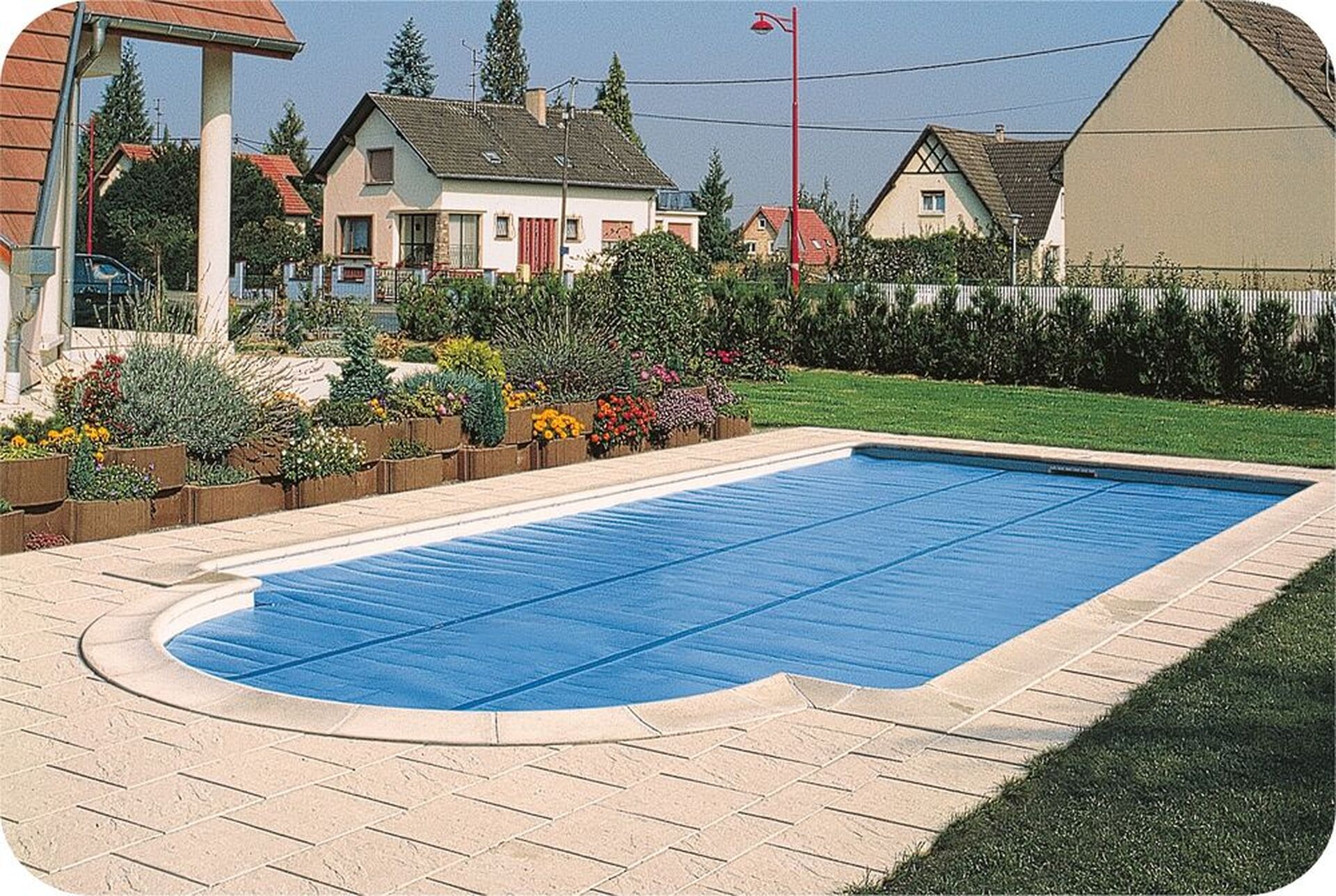 C'est une couverture flottante en mousse de polyéthylène à cellules fermées. Sa face supérieure est renforcée d'un polyéthylène armé bleu traité anti-UV (entretien aisé). Sa face inférieure thermocompressée en forme de pointe de diamant (afin de favoriser l'enroulement) avec adjonction d'un film polyéthylène de protection transparent.
