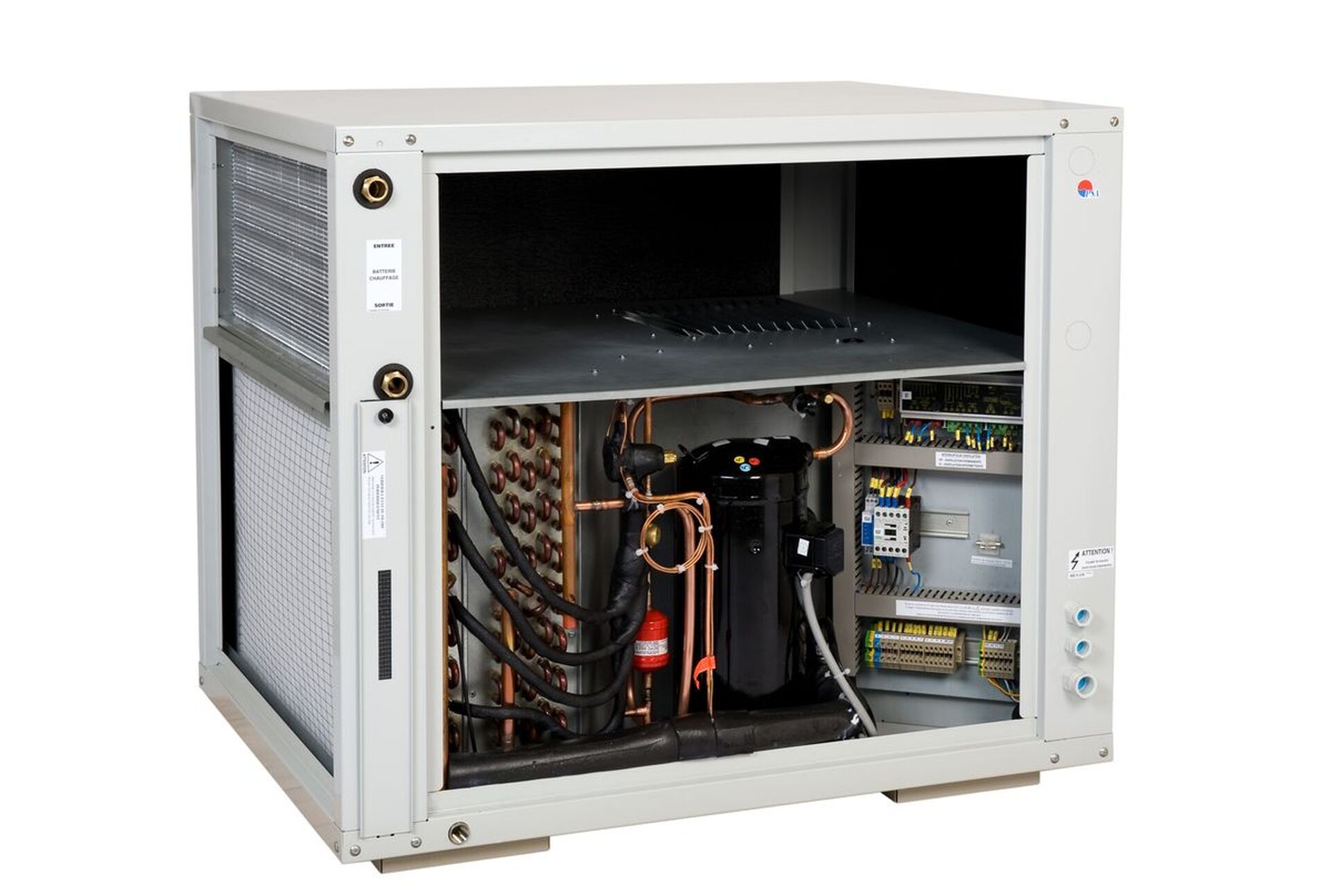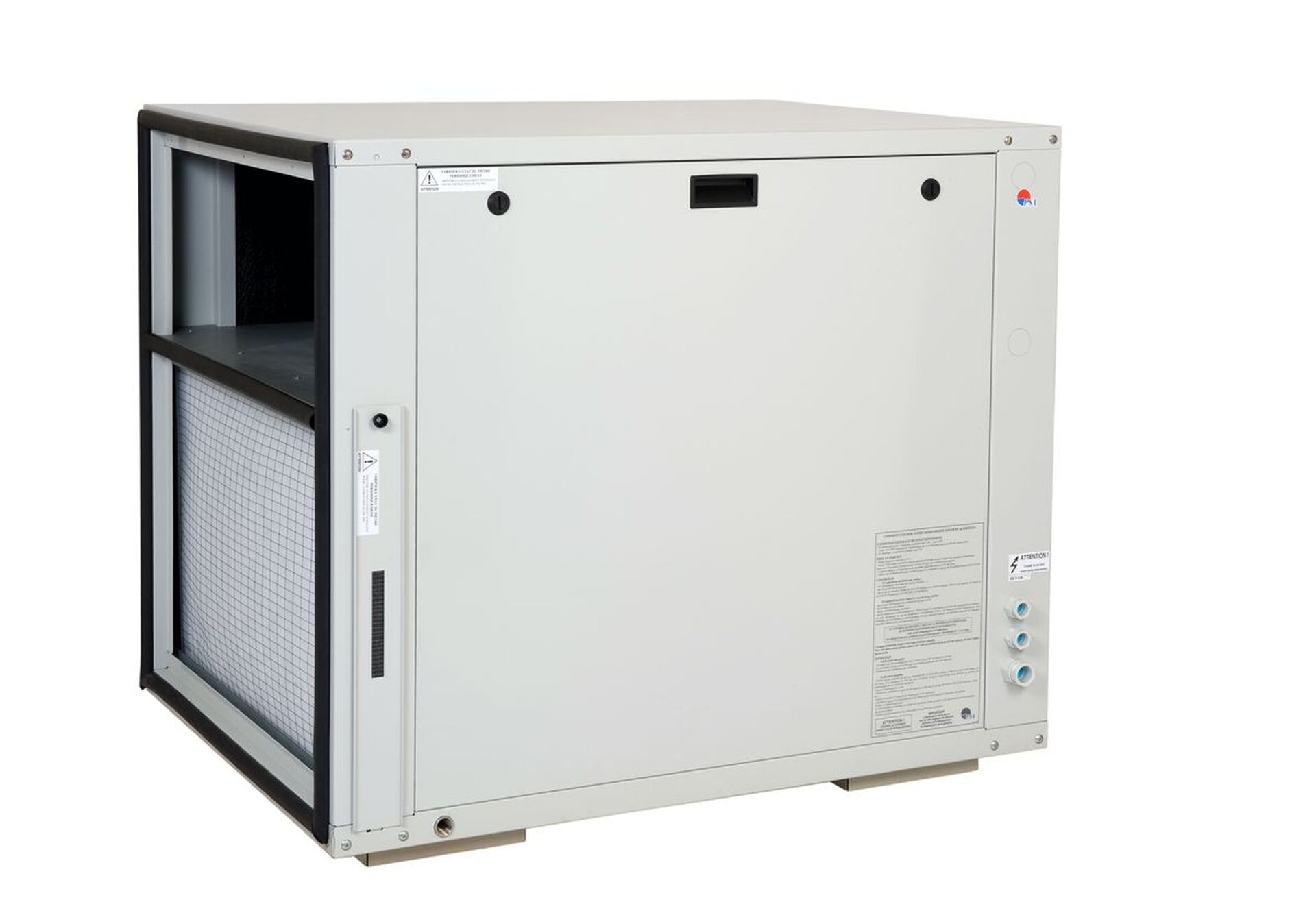 Ces déshumidificateus monoblocs de type Sirocco ou DF, s'installent dans un local technique mitoyen en traversée de parois. Seules une grille d'aspiration d'air et une grille de soufflage sont visibles dans le local piscine.