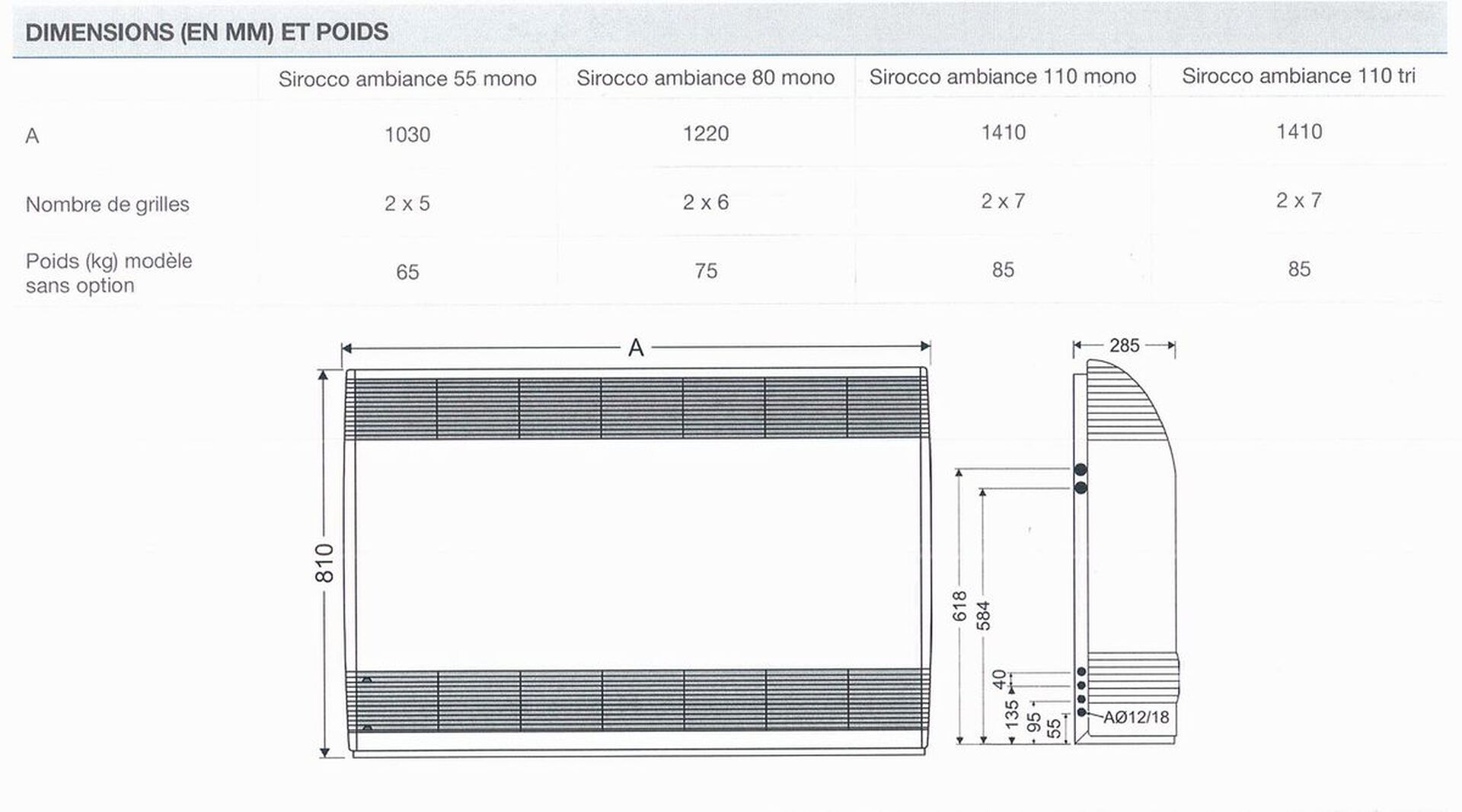 Le chauffage du local peut être incorporé en option : soit par batterie eau chaude, soit par résistances electriques.