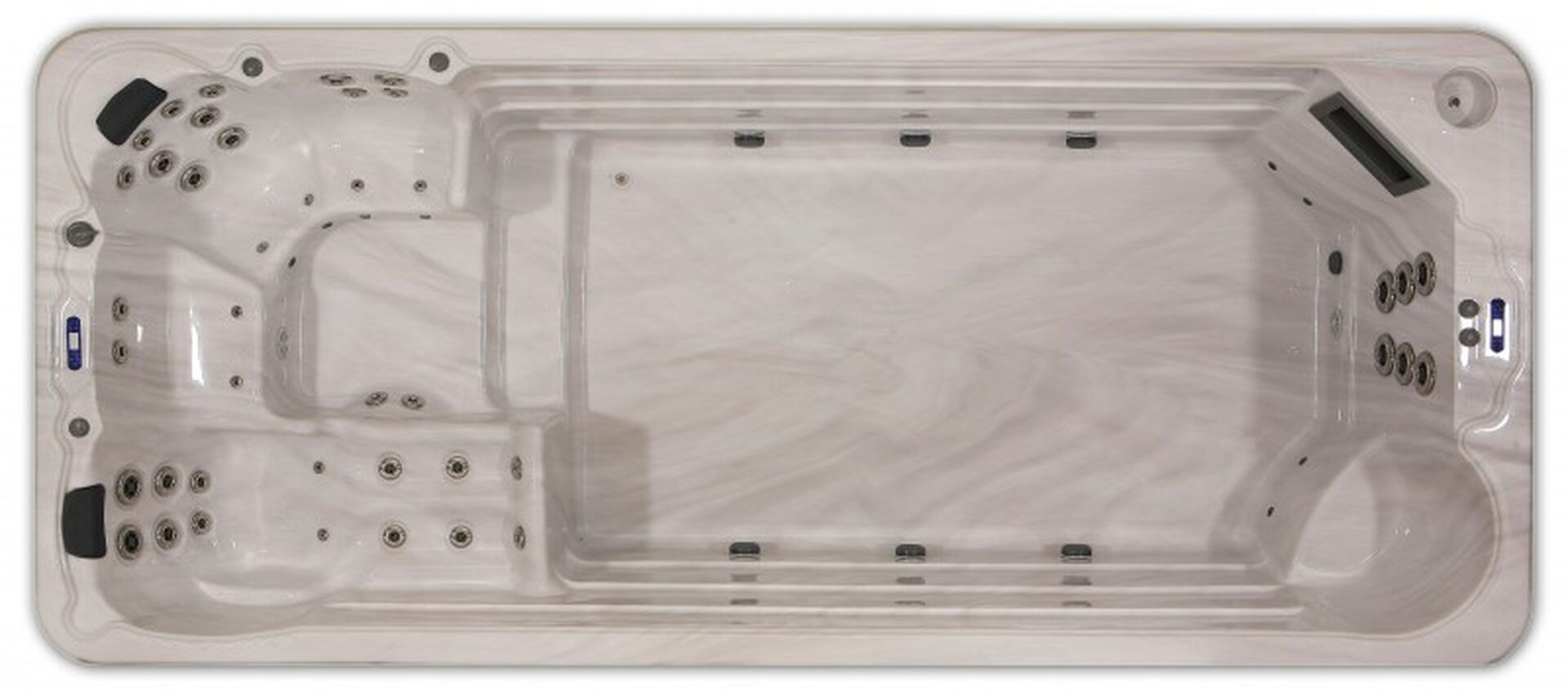 Le spa de nage Smax52 permet dans un espace réduit de combiner un coté repos et massage ainsi qu'un coté nage.