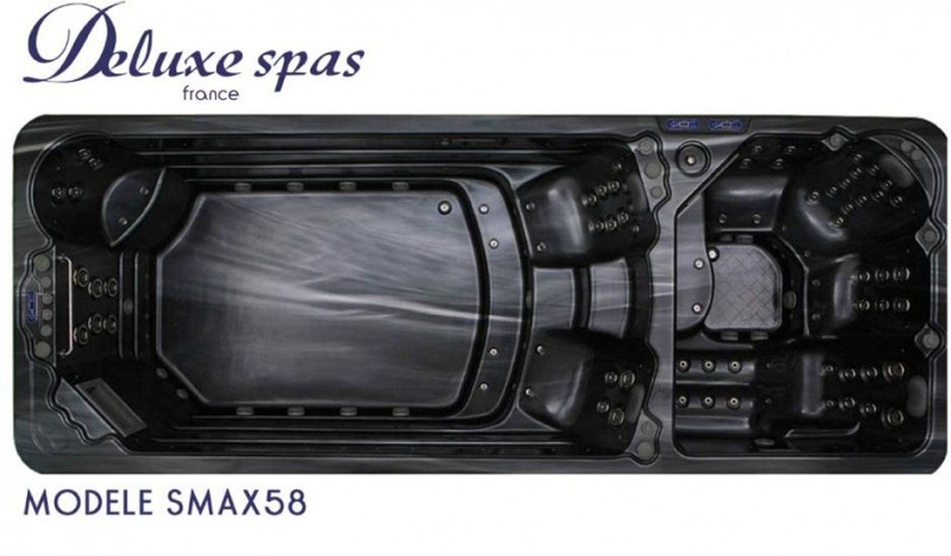 Le spa de nage Smax 58 permet dans un espace réduit de combiner un coté repos et massage ainsi qu'un coté nage.