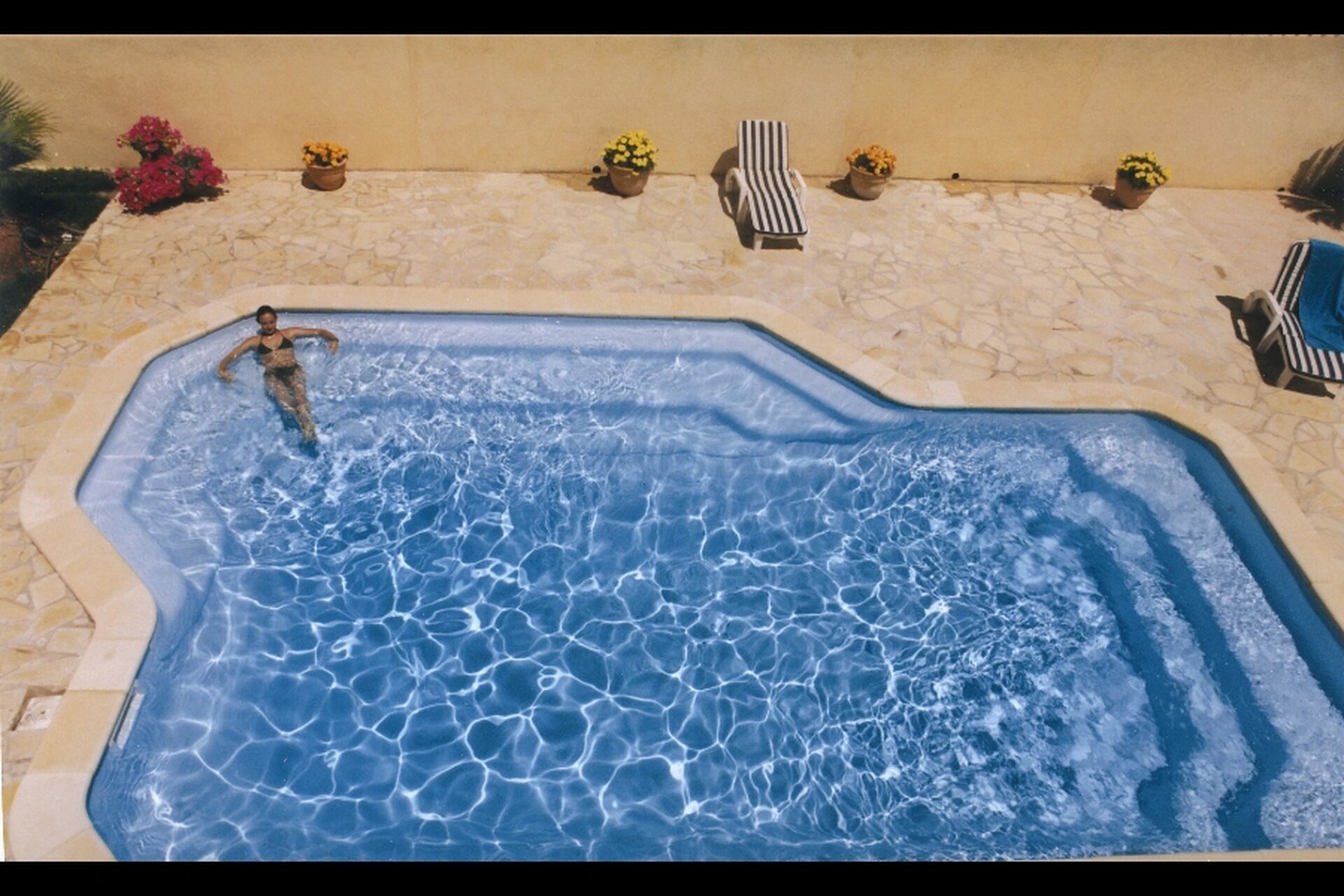 Ces piscines RECIF, à fond plat, vous font bénéficier d'une large banquette de relaxation intégrée grâce à son escalier TROPICAL.