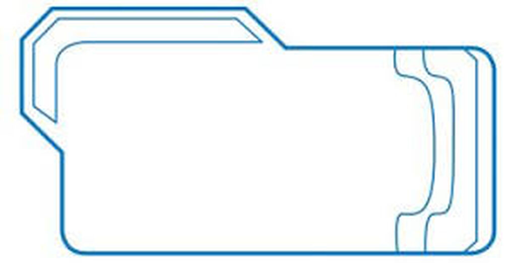 PISCINE COQUE POLYESTER FOND PLAT TYPE RECIF AVEC ESCALIER TROPICAL.