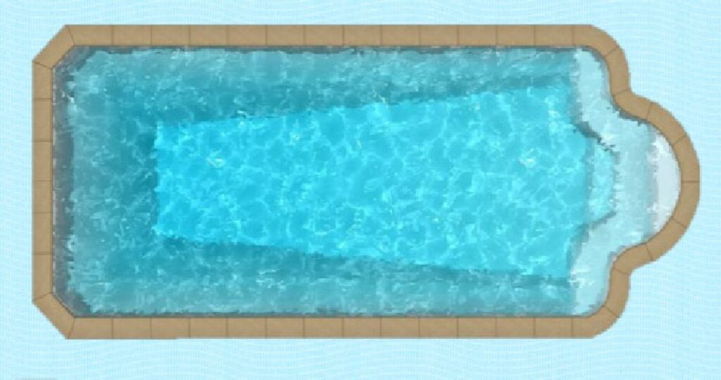 C'est une très grande piscine qui possède un escalier antidérapant au bout.