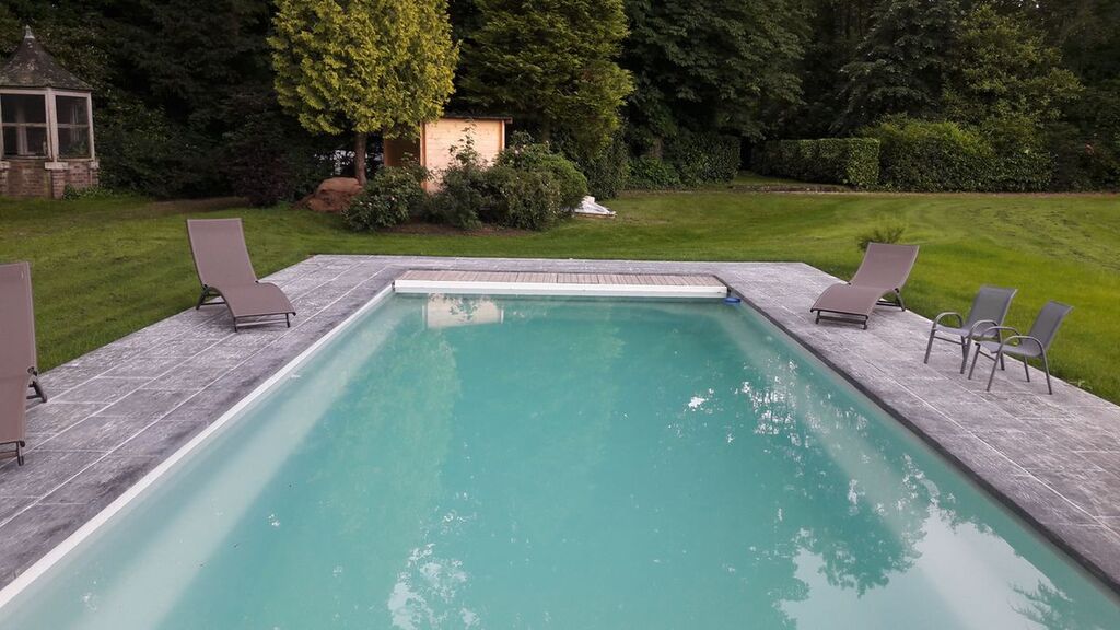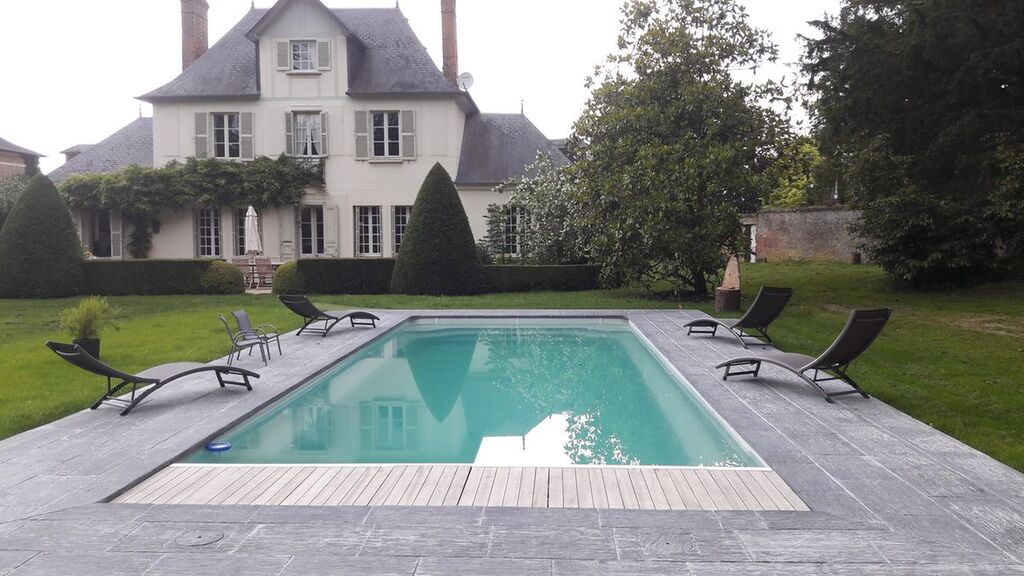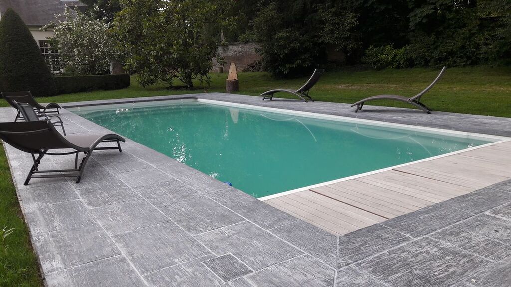 Très belle piscine rectangulaire de 10m x 4m SWEETY, devant une magnifique maison d’architecte.