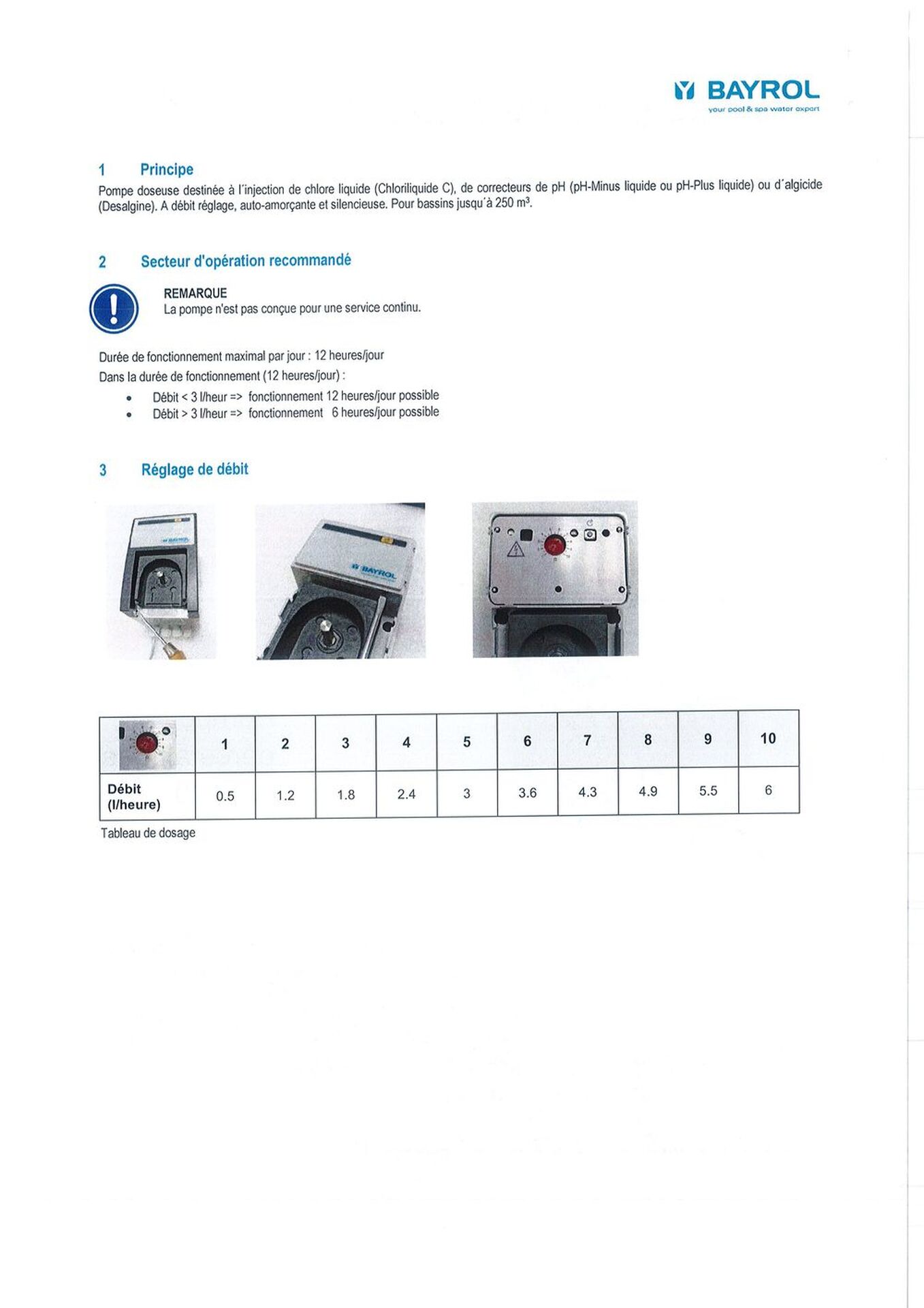 Débit < 3 l/heure = fonctionnement 12 heures/jour possible