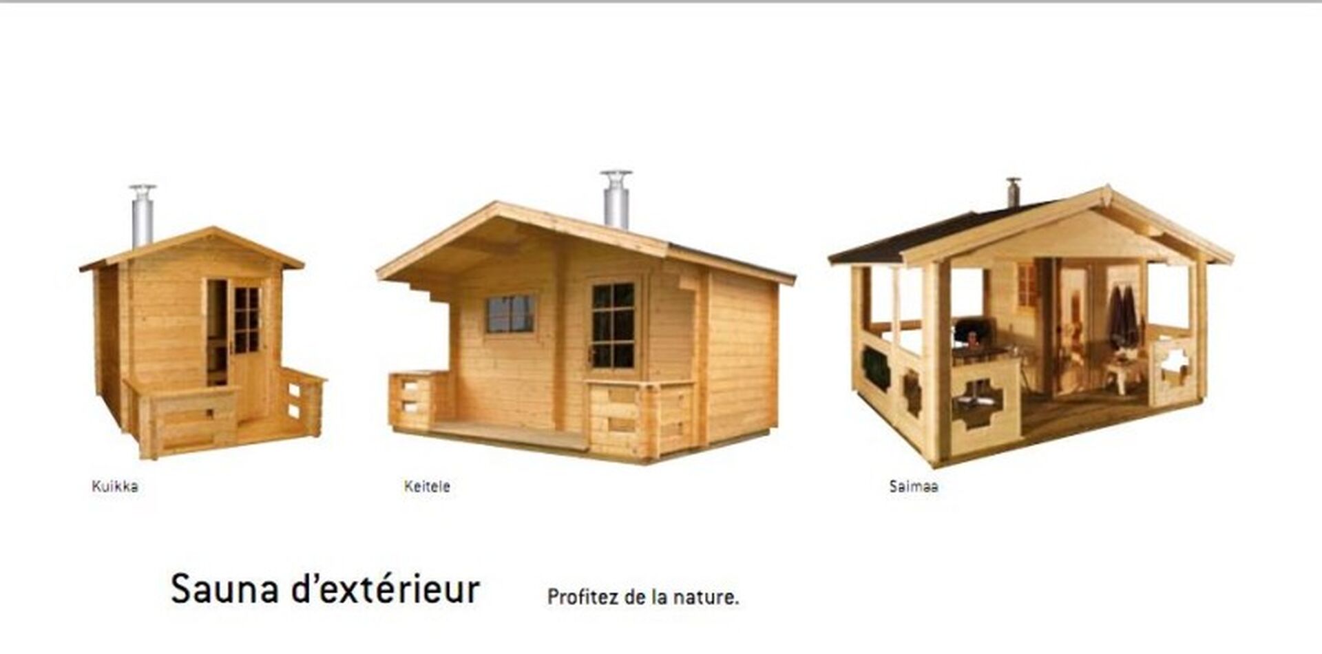 Sauna Harvia, le vrai plaisir du sauna finlandais. La sensation de l’air frais sur votre peau. Un sentiment que vous devez absolument découvrir ! Pendant des siècles le sauna en Finlande était un bâtiment à part avec des particularités typiques. Aujourd’hui, les modèles de saunas extérieurs Kuikka, Keitele et Saima a vous permettent de bénéficier de cette atmosphère dans votre propre environnement.Que vous choisissiez le chauffage d’origine à bois ou le chauffage électrique, vous retrouverez le même sentiment Harvia unique dans votre sauna extérieur.