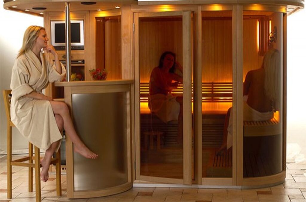 Un poêle combi permettant de prendre des saunas traditionnels ou humides est disponible en option.